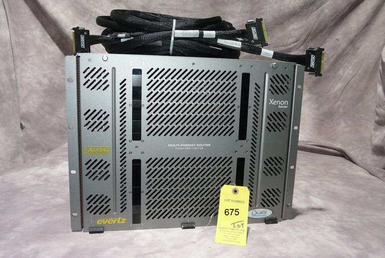 Evertz XE8-128x128 3G/HD Multi-Format Xenon Quartz Router Frame with (4) Power Supplies; (2) XE-FU Card; (4) XE-IP32HX Input Cards; (2) XE-OP32HX; (2) XE-OP32HX-XLINK Output Cards with (2) XE-OP32-3G-RP-XLINK Din Backplanes; (4) Din Connector Backplanes and (4) XLINK Cables